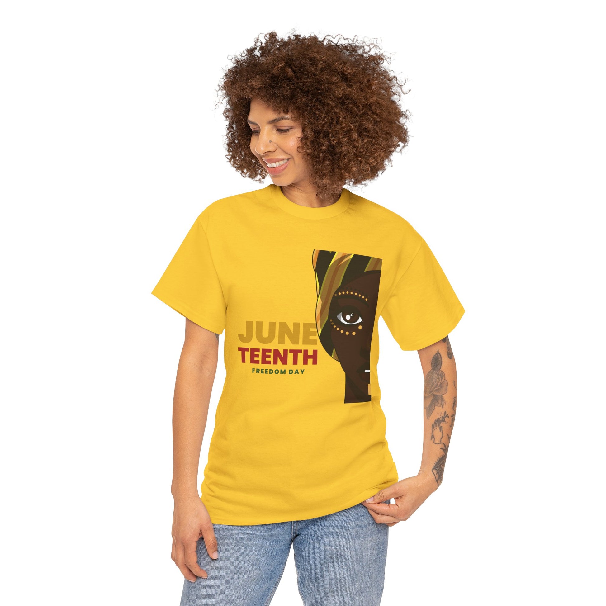 Celebrate freedom and unity with this eye-catching Unisex Heavy Cotton Tee. Designed for comfort and style, this shirt features vibrant art that pays homage to Juneteenth, perfect for expressing pride and resilience. Whether you’re attending a community event, a family gathering, or simply enjoying a relaxing day, this tee fits seamlessly into your wardrobe. Ideal for individuals who value heritage and social justice, it’s a great choice for those looking to commemorate occasions like Juneteenth, Independence Day, or Black History Month. Make a statement while enjoying the soft, breathable fabric that keeps you comfortable year-round.